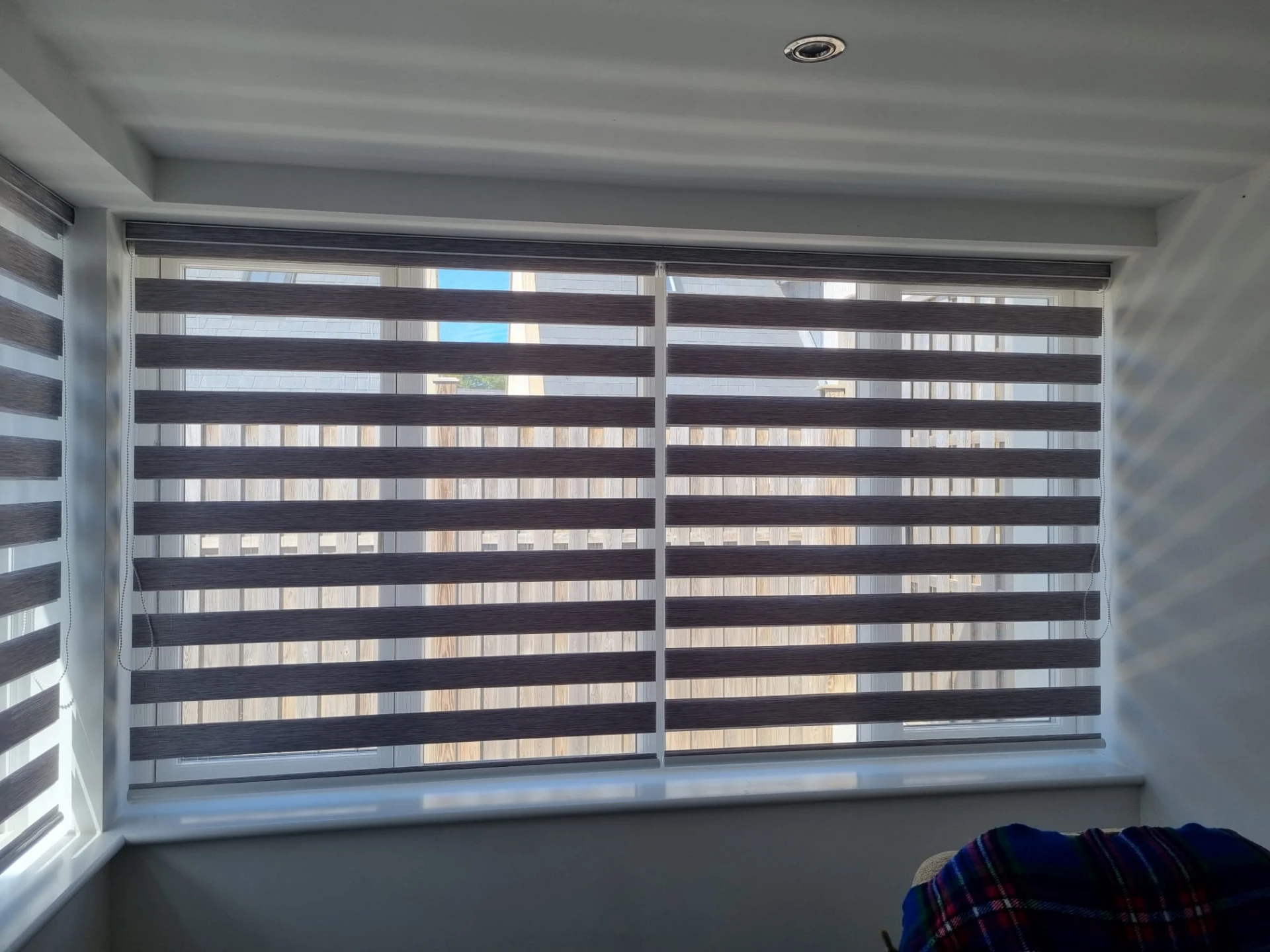 Also known as Softshade duo roller blinds or day and night blinds, they combine the benefits of voile curtains and blackout blinds in one sleek product. Boasting a dual-layered design with alternating panels of sheer and opaque fabric, twist vision blinds allow you to effortlessly control the level of natural light to suit your mood or the time of day.